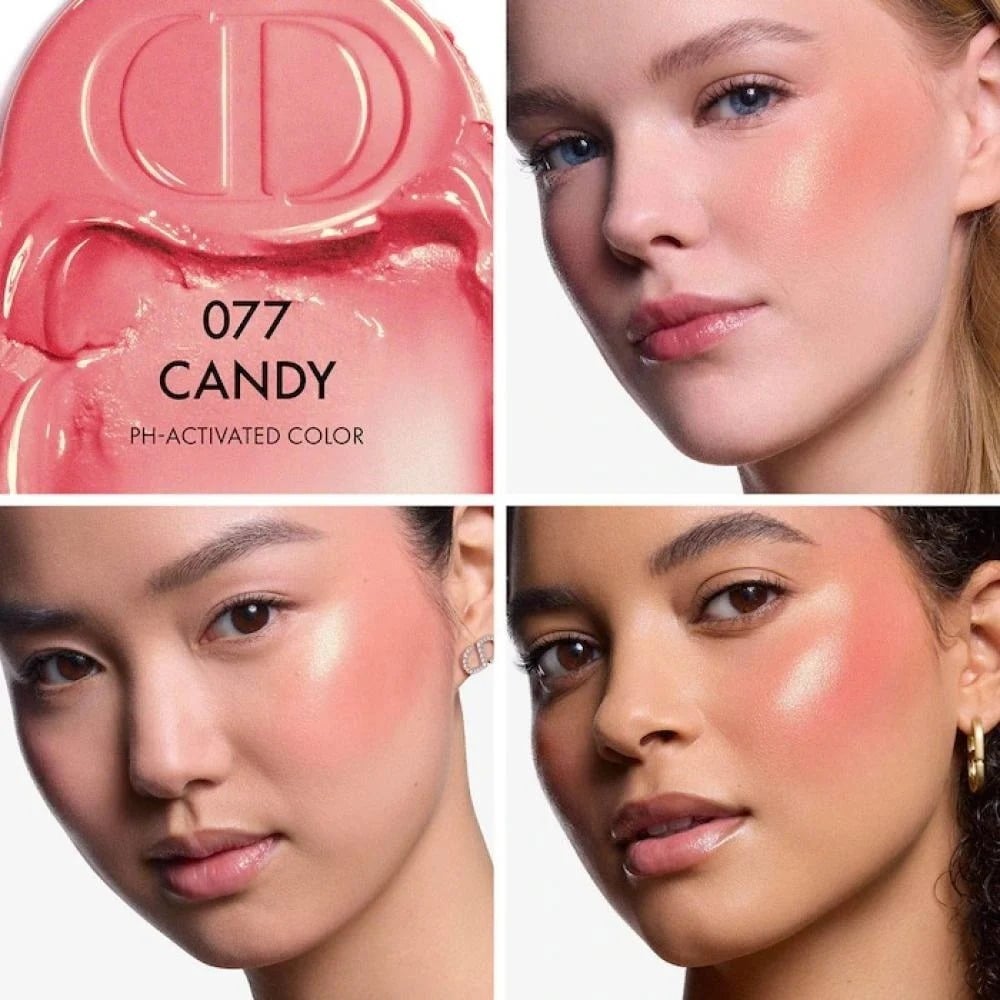 - نصيحة احترافية: للحصول على لون أعمق وأكثر ثباتًا، ثبتي أحمر الخدود عن طريق وضع أحمر الخدود البودرة Rosy Glow من DIOR في الأعلى (يباع منفصلًا).