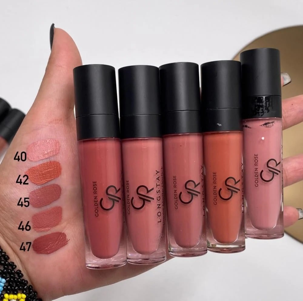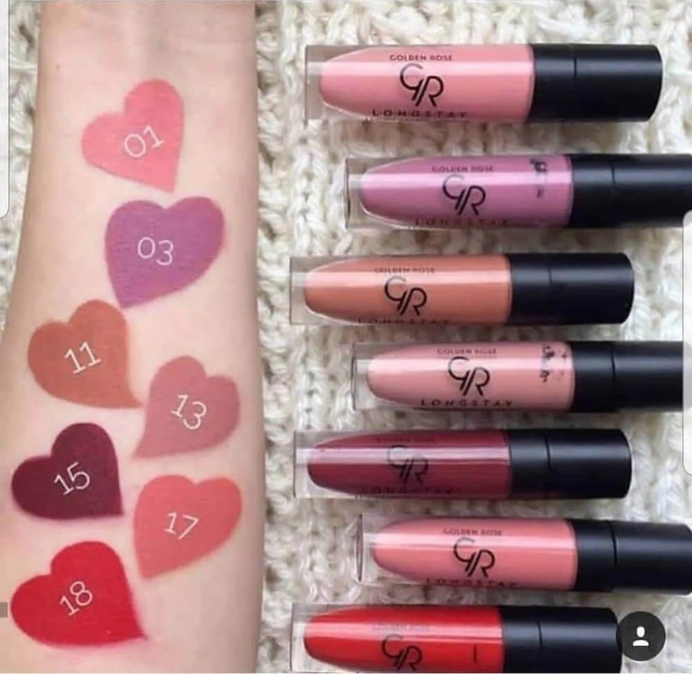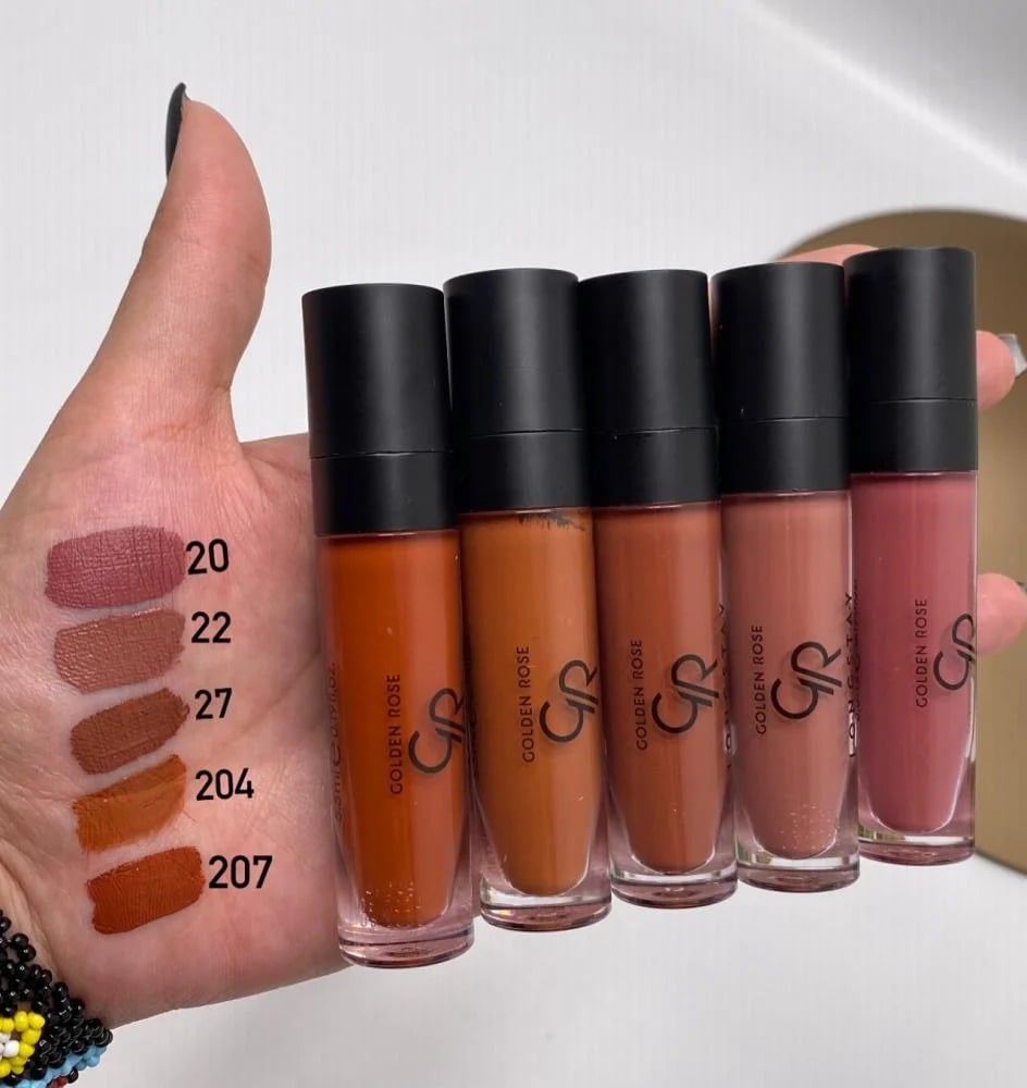روج سائل مات من قولدن روز يتميز بتركيبة طويلة الثبات تعطي مظهرًا غير لامع (مات) للشفاه. يأتي مع فرشاة دقيقة لتطبيق سهل ولون غني وكثيف. يتميز أيضًا بكونه خفيف الوزن ومريح على الشفاه، مع مقاومة للتلطخ ويدوم لفترة طويلة.